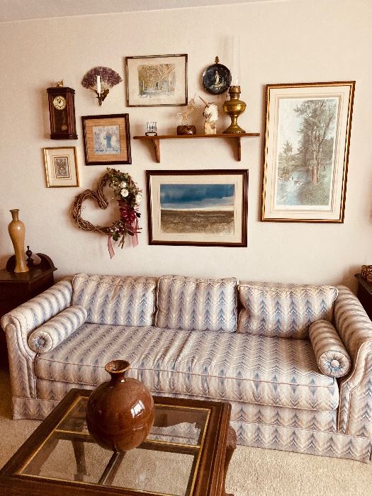 Antiques, Vintage and Tools! Antique Armoire. Antique Mahogany Dining Table and Chairs. Nice Selection of Crystal And Glassware. China Sets. Sewing Machines. Craft Room. Sewing and Craft Access. Huge Selection of Baskets and Books. Green Chesterfield chairs. Antique Desk. Music Stand. Vinyl. Audio Components. Selection of Framed Artwork. Refrigerator. Kitchen is Full. Pots And Pans. Cookware. Queen Size Bedframe. Beautiful Vintage Carpets. Sofa. End tables. Antique Wall Clocks. Antique Dresser. Pull out Sofa. Antique Tables. Linens. Tools. Wood Remnants. Tins. Table Lamps. Singer and Brother Sewing Machines. Band Saw. Craftsman Toolbox. Table Saw. Hand Tools. Boxes of garage treasures and...