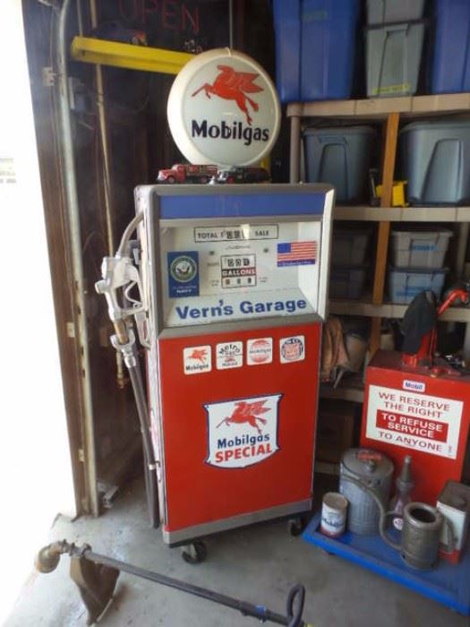 PREVIEW: 8:00am START TIME: 10:00am Partial Listing: Craftsman rolling tool box with tools, craftsman 10in table saw, Bennet gas pump with globe, Die cast toy cars, Old drive in movie theater speakers, nice drill press, spittoon, rustic hand made outhouse style sheds, lots of mobile oil related items, dremmel, antique lanterns, Dewalt staple gun, old traffic signal, old gas cans, craftsman wool planer on cart, hand saws, license plates, beer signs, reproduction advertising signs, fire hydrant, power cords, hundreds of small hand tools, old water well pump, Dewalt chopsaw with stand like new, diamond plate tool box, floor jacks and...