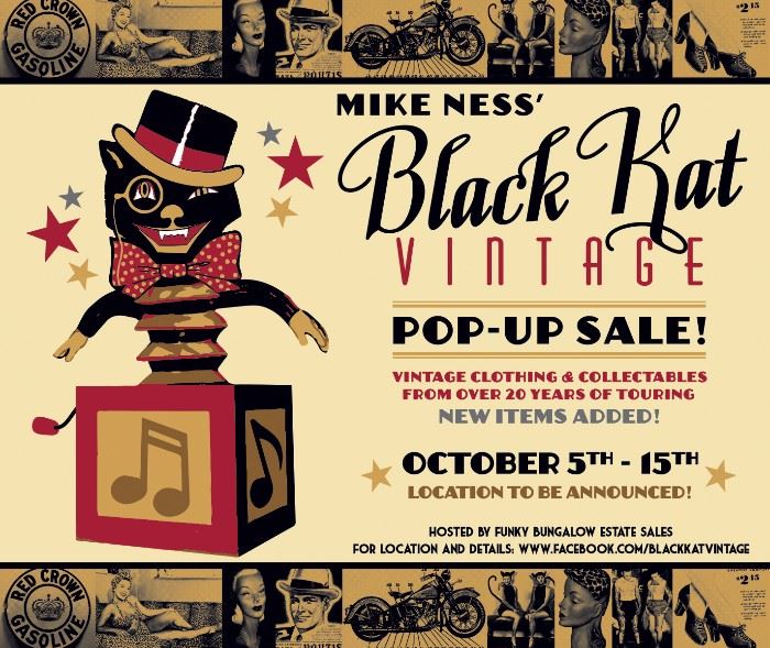 Mike Ness From Social Distortion has been collecting while on the road touring for over 20 years.. Mike's personal collection became so huge that he opened a vintage store called Black Kat Vintage. In this up & coming pop-up sale, you'll not only find authentic old school relics from his store he closed about a year ago, but his personal overflowing private collection that he was not willing to part with until now.. Stored away for years, this is a one of a kind, coolest of the cool, vintage collections around... We are just starting our set-up in an old...