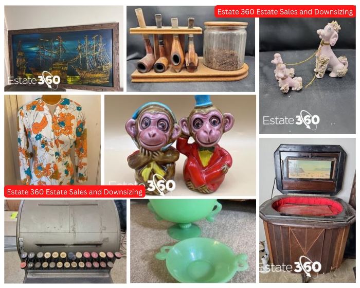 Estate Sale Features: Vintage Collectibles & Antiques, Antique Liquor Cabinet, Antique White Rotary Sewing Machine, Vintage Clown Figurines, Vintage Turtle Figurines, Vintage Salt & Pepper Shakers, Mid-Century Display Cabinets, Vintage Elephant Figurines, Tension Pole Lamp, Mid-Century Kurt Versen Style Pendant Globe Lamp, Antique Ice Box, Vintage Ninja Turtle Collectibles, Antique Furniture, Jadeite, Uranium Glass, Fenton Glass, Princess House Crystal, Drip Glaze Pottery, Mid-Century Vases & Pottery, Vintage Board Games, Vintage Movie Posters, Homco Porcelain Figurines, Lefton Figurines, Vintage Polaroid Camera, Capodimonte Italian Porcelain, Crystal, Coleco Vision Video Game System, Remington Typewriter, Antique National Cash Register, Vintage Zenith High Fidelity Sterophonic...