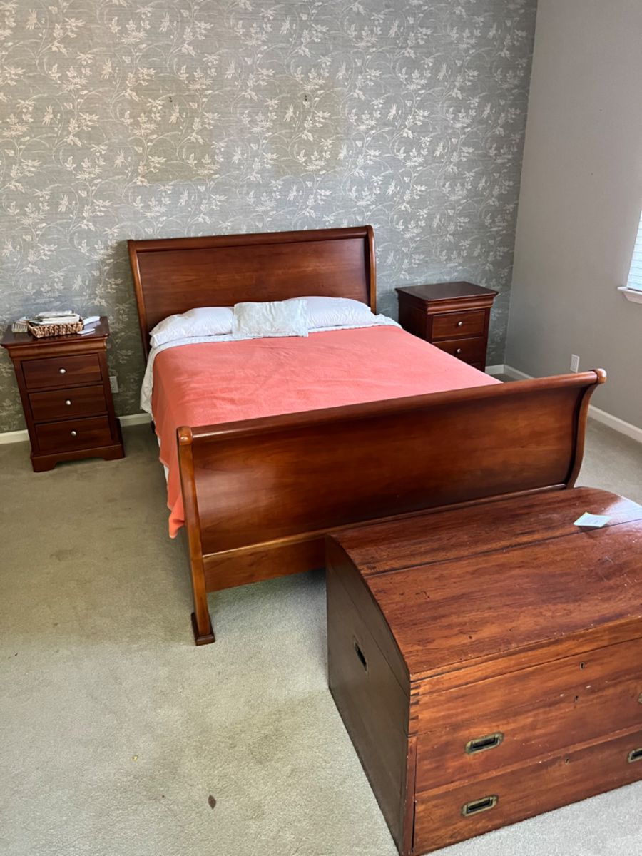 Three bedroom house with beautiful sleigh bed and matching nightstands, Portico set including sofa bed loveseat and chair, two beautiful armoires, Persian rugs, art, many collectibles, patio furniture, large pots, handcarved wood duck decoys, etc. Too much to list all.