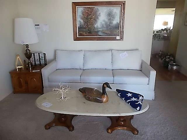 ESTATE SALE by Elissa IN SUN CITY Address: 26697 Sun City Blvd., Sun City, CA 92586 Dates: Dec. 5,6,7 -- Thurs. thru Sat. Time: 8am - 2pm _________________________________________ ITEMS FOR SALE: Queen Electric Bed w/Brass Headboard (Like New); Another Regular Queen Bed w/Brass Headboard; Maple Long Dresser, Highboy and 2 Night Stands; Colonial Craft Birch Long Dresser w/Mirror, 2 Night Stands; Tall Bookcase w/Storage doors below; 2 Matching Floral Easy Chairs; Keller Dining Set: 6 Chairs, 2 Leaves; Large Lighted China Cabinet; Tall Lighted Narrow China Cabinet w/Beveled Glass; 6 Ft. White Brocade Sofa Bed Couch (Like New); 7 Ft....