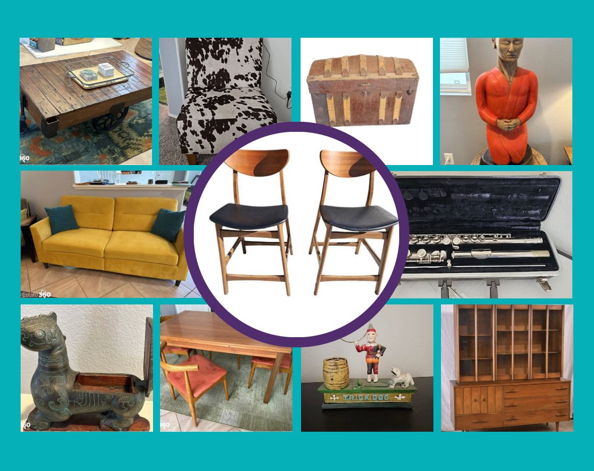 DOWNSIZING SALE IN TEMECULA, CA BIDDING NOW! Thu, November 21 - Mon, December 2 Location: Temecula, CA # of Items: 152 Estate Sale Company in Riverside County Estate 360® Estate Sales & Downsizing Estate Sale in Temecula, CA Estate Sale Features: Quality Home Furnishings and Antiques, Designer Handbags and Home Décor, Vintage Cast Iron Circus Clown and Trick Dog Mechanical Coin Bank, Vintage 1940's Tin Carnival Swing Toy from Germany, Pair of Baxton Studio Mid-Century Style Black Counter Stools, Longboard Skateboard Deck and Body Glove Body Board, Pokémon Johto Edition Monopoly Game, Star Trac Spinner NXT Exercise Bike, Volkswagen Jetta...