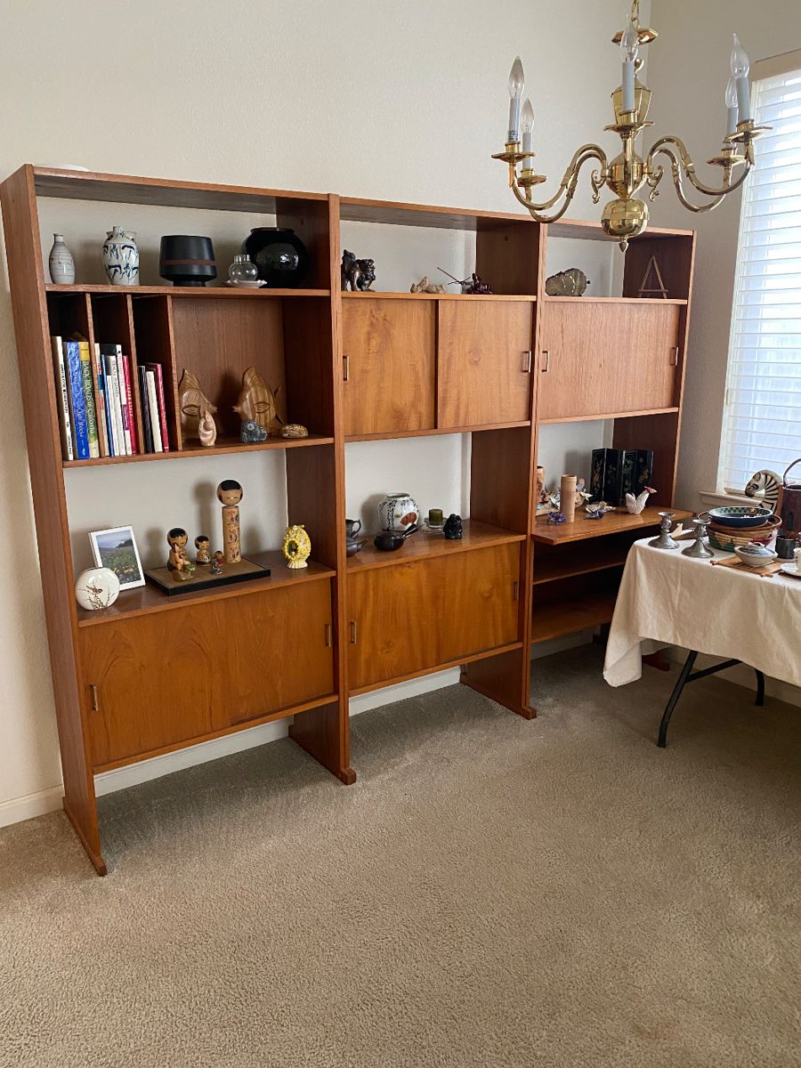 This is a smaller but mighty estate sale! Everything has been well taken care of.  Many Japanese items, scrolls, dishes, rice bowls, Geisha dolls in glass cases,  books, tons of garden items, many plants too, stereo system, couch, chairs, kitchen table, housewares, artwork, mid century modern shelving unit, glass coffee table, craft supplies, tools, mini refrigerator, freezer, futon, and much more!