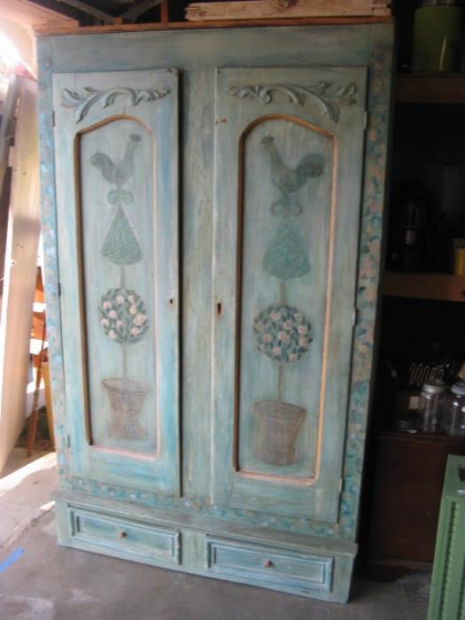 I am hosting a Living Estate sale ~~stuffed with all antiques~this weekend~4days~11/13, 14, 15 and 16! Thurs Thru Sunday 8-12~ I will be featuring a collection of the most wonderful primitives, collected in Pennsylvania~the garage is loaded~and will have more in the next few weeks as she is doing a major downsize. Just in~a fabulous old kitchen cupboard~which would make the best island~or a barthroom vanity! Has old porcelain white pulls~One of my fav. pieces. A Handpainted Antique European Pine Armoir, with the most wonderful Chickies~from N Cali, and in wonderful condition. A tall chimney cupboard~a black outside, with the...