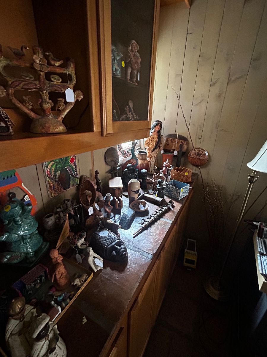 Beautiful home filled with furniture, primatives, original art work. Dressers, desks, sideboard, church pews, Roll top desk, chairs, tables, mission rocker, ottoman, bars, bentwood chairs, rockers, china cabinets. Lamps, crystal, mirrors, French country sofa, Cloissone, tons of books and records. Holiday items. Dishware, serving ware, antique dolls. Antique bed, mattresses, vases, pottery, Indian and Mexican items. Many nativity sets, candle holders. Linen, tablecloths, blankets, comforters. Clothing, shoes, purses. Accessories. Full kitchen.