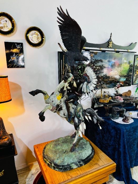 Legacy Estate Sales presents a home filled with MID-CENTURY MODERN FURNITURE, including a THIN LINE KITCHEN SET, METAL WALL ART, LAMPS AND CHANDELIERS, BRONZES (some life-size), BRASS STATUARY (including birds and other animals), some ASIAN MOTIF, NATIVE AMERICAN DÉCOR/ARTIFACTS, SILVER AND TURQUOISE JEWELRY AND BOLO TIES, MEN’S CLOTHING (size L), LEATHER BOOTS and SHOES, RIVIERA JUBILEE NICKEL SLOT MACHINE, CAROUSEL HORSE, DOLLS, some CLOWN DÉCOR, YAMAHA black-lacquered CLAVINOVA, IRONWOOD CARVED ANIMALS, TAXIDERMY, artwork, mirrors, rugs, FOUNTAINS, ART GLASS, collectible KNIVES, PATIO including furniture, YARD ART, pots, appliances, garage and so much more!! Additional pictures can be seen at www.LegacyEstateSales.com! Can't...