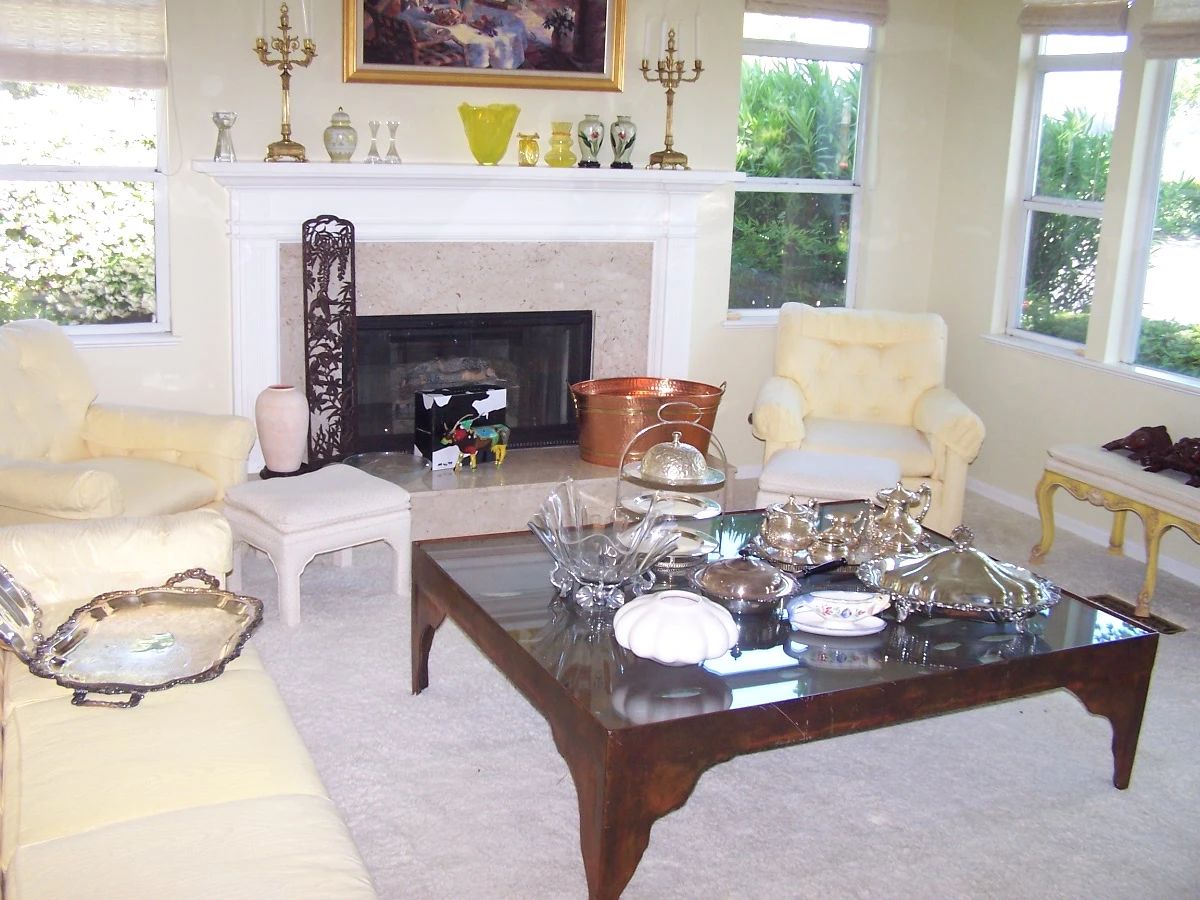 Quality Napa Valley Estate is Full of Upscale Items - Brown Leather Sectional - Sofa & Matching Arm Chairs - Pair Matching Loveseats - Eric Powell Steel "River" Coffee Table 5' x 4' - Dining Table Seats 10 - Dining Chairs Set 8 Upholstered with Caned Backs - French Country Wardrobe - Round Glass Kitchen Table & 4 White Chairs - King & Queen Beds - White Trundle Day Bed - Etagere Silver Bamboo - Grey Trundle Day Bed - Howard Miller Wall Mirror w/drawer - MCM Danish 3 Paneled Mirror - VINTAGE GLASS Baccarat - Steuben - Tiffany &...