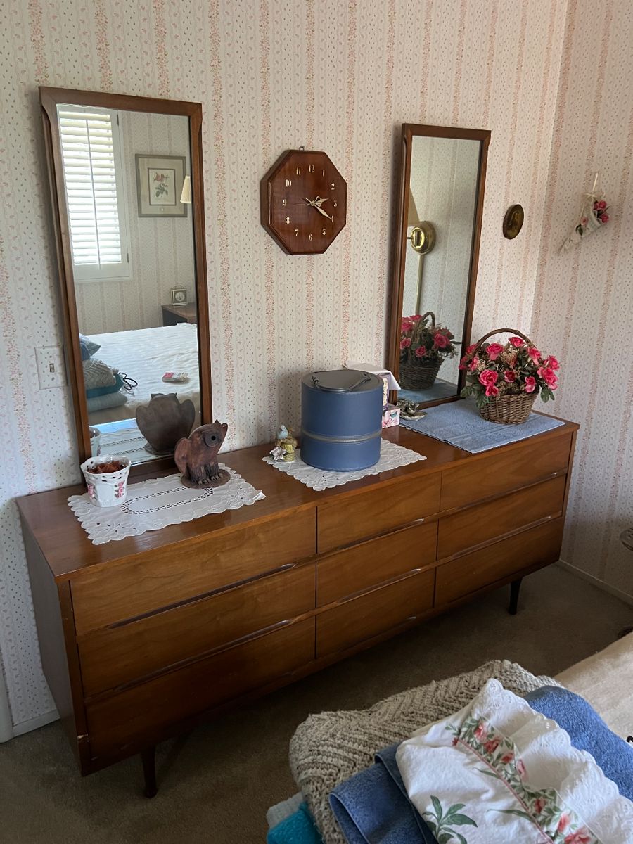 This is a last minute sale so be sure to check back for more details. I will be updating the list and/or photos as I continue to go through the house. There will be no sign up sheet. The List ~ MCM Ekornes Stressless Chair Vintage Windsor 9 Panel bevelled step wall Art Deco Mirror Cutco iMac Braun Tube Desktop Apple Computer iMac vintage clothing men’s clothing Wild Earth Pottery Cal Style Chrome Dinning chairs in excellent vintage condition Walter of Wabash MCM dining table in excellent vintage condition. Hull Pottery Mid Century Modern furniture 2 queen size beds women’s...