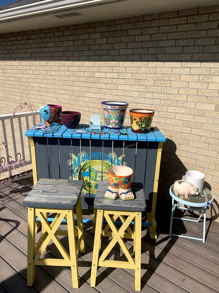 • Great deck furnishings, they loved Jimmy Buffet and have the bar and Margarita machine to show it (flock of flamingo yard art and rare seashell side table). Vintage metal chairs and tables, fun pottery with bright and festive themes on one of the most beautiful decks in Denver. • Cherry Creek Art Festival was important to this family and they have the art to prove it! • Beautiful Vintage Furniture and Lamps (Italian glass, tables, ash trays) • Fun Drexel Rolling Sideboard Buffet/Dry Bar in Dining Room, beautifully preserved Henredon Dining Room Set with eight chair and two inserts...