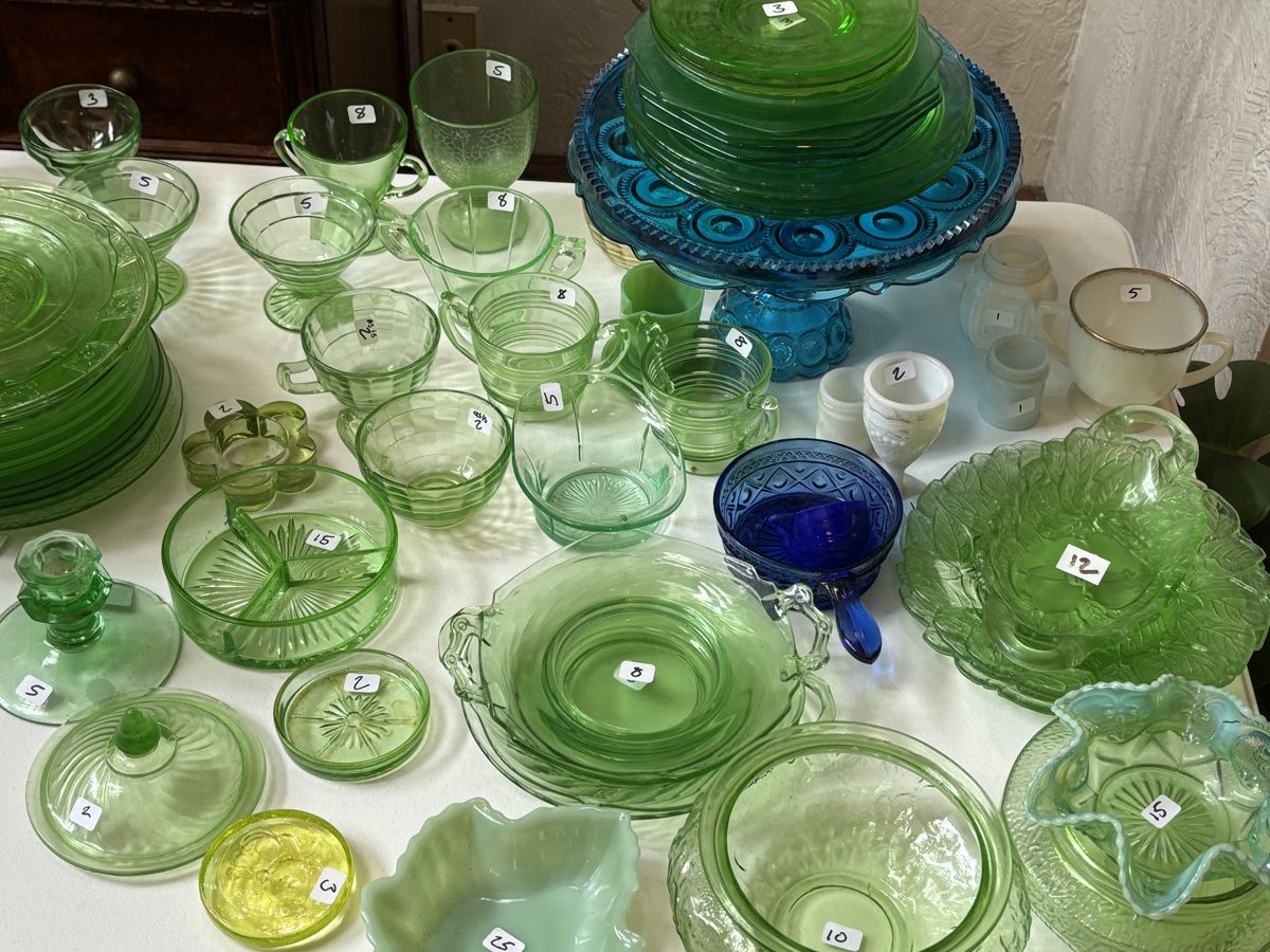 Tons of uranium glass, antiques, and more