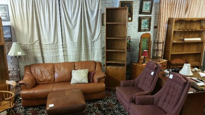 What a wonderful sale we have for you this week! There are tons of vintage items as well as newer and more modern pieces to be had. You do not want to miss out since there is sure to be something for everyone! *Furniture* Blue & Brown leather sofas Blue leather loveseat Blue leather chair Vintage Stressless recliner with ottoman Vintage Chairworks chair with ottoman Modern Mission style computer desk 2 reupholstered Mid Century chairs Teak and glass entertainment center Tall bookcase with storage Nichols & Stone arm chair Lighted curio cabinet Northwest chair company buffet 5 side chairs and...