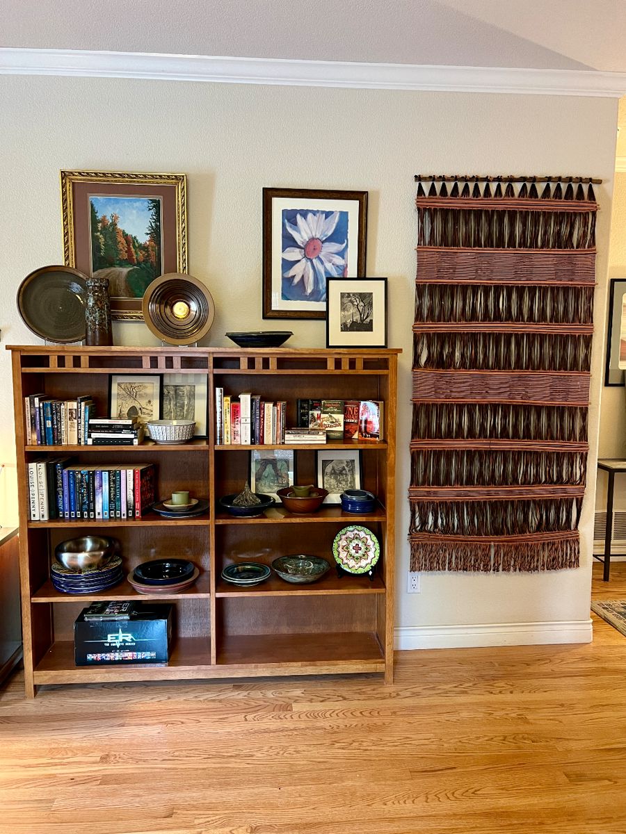 50% OFF ON SATURDAY! This townhome has lots of beautiful home decor and furnishings! And parking is pretty easy here too! Room and Board glass framed doors and drawers storage cabinet. Arts and Craft style book shelves and TV cabinet. Gorgeous large maple cabinet. Lots of storage. Many other really nice wood cabinets for storage. Custom upholstered by Norwalk King size metal bed frame and mattress. Futon on hardwood frame Lots of area rugs Art pottery by Roy Hershey of Pennsylvania. Dark blues, metallics and more. Other pieces of art pottery by various artists. Many gorgeous stain glass lamps-Tiffany style...