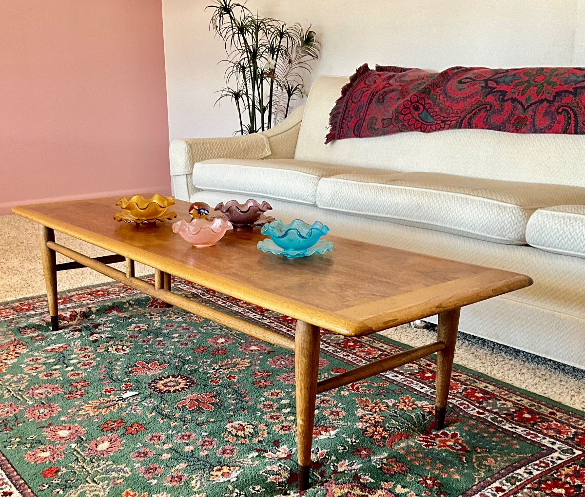 Lane MCM bedroom set, two lane MCM coffee tables, MCM lamps, MCM sofa and chairs, Noritake China set, silverware, MCM bar cart, clothing, quilt, chenille vintage bed spread, lane MCM desk, vintage dressers, vintage drop leaf secretary, clown sculpture by Ron, MCM butterfly sculpture, desks, shelves, brass duck bookends, books, antique frames, paper shredder, file cabinets, vintage Pyrex, depression glass, kitchenware, Dansk dishes, vintage cook books, cream leather recliner, patio set, bird houses, yard tools, tool box, Christmas decor, glasses, crock pots, cast iron skillet, ceramic Christmas tree, vintage arm chairs, luggage, 1950s laminate drop leaf table, kenmore sewing machine...
