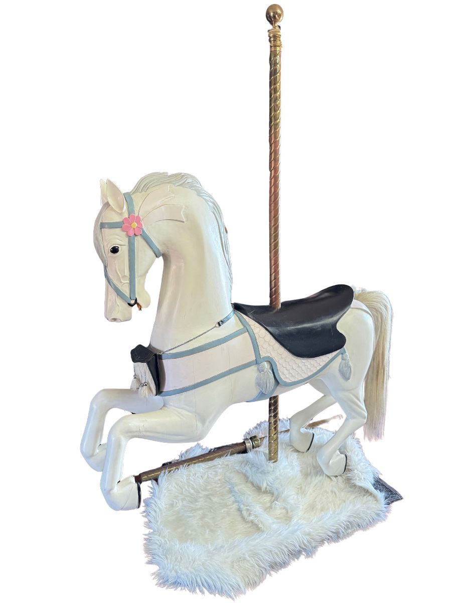 This is a one of a kind estate featuring tons of unique, hard to find, and collectible items. This is your chance to find that rare antique, or a piece of art that is perfect for your collection. Some notable items and features in this auction are highlighted below: - Furniture pieces including hutches, benches, decorative pieces, trunks, and more - One of a kind full size Stein and Goldstein solid wood carousel horse reproduction - Hammond organ - Not just one, but two Singer sewing machine treadle tables with sewing machines in great condition - Numerous pieces of artwork...