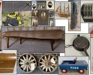 Part Two Of An Estate Auction in Golden Featuring A Mid Century Live Edge Table, Pedal Cars & More