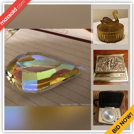 WHAT IS IN THIS AUCTION? This online auction features Christmas decorations, Abstract Necklace Pendant, African Folkcraft Necklace, Handcrafted Ethnic Necklace, Aboriginal Art, Mexican Pottery, West African Drum, Frankoma Tray, Vintage Amber Glass, Crafting Supplies, Comics, Jim Shore Christmas collectible, Lampwork Glass Necklaces and much more! HOW TO ACCESS THE AUCTION? Simply click here: MaxSold TO BID PLEASE REGISTER: Copy and paste this link to your browser https://maxsold.maxsold.com/register WHEN DOES THE AUCTION CLOSE? Everything will SELL BY Saturday December 19, 2020, 8:00 PM regardless of price. Bidding starts at $1. This is an online auction. We do not sell or ship...
