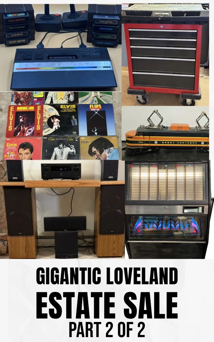 Part 2 - Gigantic Loveland Estate Sale - Model Trains, Electronics, Tools, Household items, Vintage Record Players, Furniture and so much more!!! Some of the treasures you will find include: Antique Copy Of Stradivarius Anno 1725 Vilon - Made In Germany Craftsman 5 Drawer Rolling Tool Cabinet & Contents Pacific Hydro Star 68387 1HP Stainless Steel Shallow Well Pump Model Trains, Trains and more Trains (Lionel, Marx, etc.) Vintage Rock-ola 494-1 Jukebox 45RPM A large amount of Vintage Record Players, RCA Victor, etc. Carolina CPW30 30 Gallon Part Washer Vintage Seeburg Select-o-matic 200 Surround Sound System Denon AVR-4310CI Home Theater...