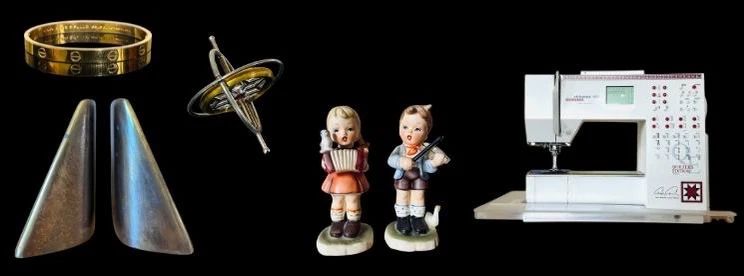 Bernina Virtuosa 153 Sewing Machine, Cartier Design Love Bracelet, FA Reynolds French Horn