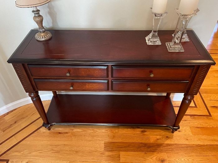 Disclaimer: Due to the size and coordination required for large furniture or heavy equipment sales, we do authorize pre-sales so there is more flexibility for scheduling pick up. Please contact us via phone or email should there be any questions or interest on a large furniture or heavy equipment items. Thank you. items to include: Raymour & Flanigan Traditional Mahogany Wood Dining Set (extension table with leaves, 8 chairs, China cabinet/buffet and table protection covers) Ethan Allen Mohagany round extension table with leaves to convert to large oval, includes 6 Chairs (2 warm red, 4 taupe upholstery) 2, 72" Sony...