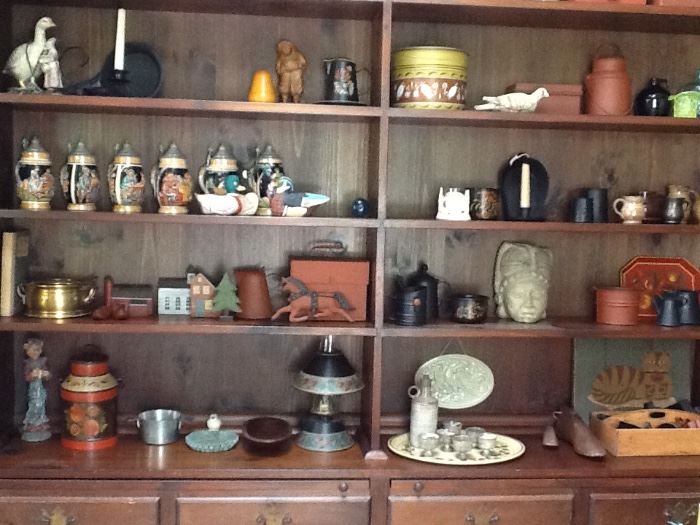 ONE DAY SALE. THURSDAY ONLY, JUNE 21st! Estate sale, Fairfield, CT. One day only, Thursday, June 21st, 10 am - 4 pm Estate of long time Fairfield resident and antiques collector. Many antique one drawer stands, tables, chests, and trunks. Also two 19thC ornately carved Asian chests, a 19thC Asian carved four piece stacking table set, and a carved antique Asian 4 panel screen. A collection of Shaker boxes, and an extensive collection of toleware. Many antique pieces of childrens furniture and hand made doll house furniture. Lots of antique country accents. Also a large Mid-Century driftwood base table with...