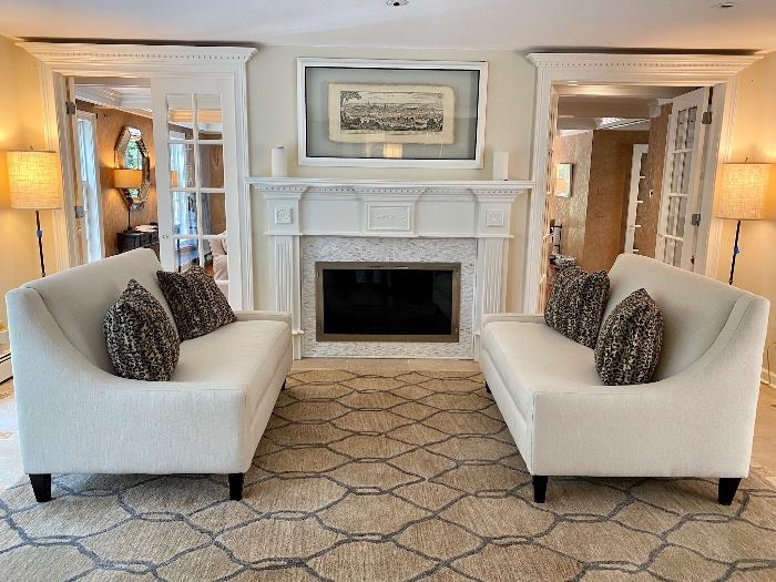 PLEASE PREVIEW OUR WS2 WESTPORT, CT ONLINE MOVING SALE OUR WATERCRESS 2 DIVISION OFFERS SMALLER GROUPINGS SAME QUALITY Featuring Grouping of Home Furnishings From Westport CT All Sales Are Final TY! Please note items in sale are quality used furnishings sold directly from the home . Please Read descriptions for condition details! LIVING ROOM, FAMILY ROOM and KITCHEN Pair of Creme Sofas, Maitland Smith Cabinet and Writing Desk, 5ft Round Handsome Breakfast or Dining Table with Inlaid Decoration on Top, Sofa & Coordinating Comfy Side Chairs with Linen Bamboo Color Slip Covers, Tufted Creme Ottoman, Iron and Glass Cocktail Table,...