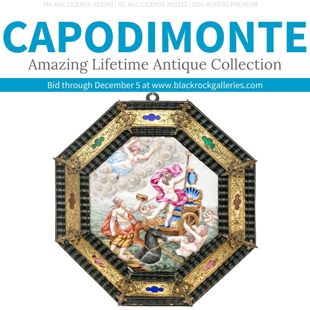 AMAZING LIFETIME COLLECTION OF ANTIQUE CAPODIMONTE @BRG GREENWICH SALE BEGINS TO CLOSE TUESDAY, DECEMBER 5 AT 8:35 PM EST LOCATION: BRG-GREENWICH 83 ITEMS VIEW ALL ITEMS & BID ONLINE AT WWW.BLACKROCKGALLERIES.COM BRG is pleased to present this stunning collection of antique capodimonte pieces artfully crafted in every shape, size, and taste. Happy bidding! V IEW ALL ITEMS & BID ONLINE AT WWW.BLACKROCKGALLERIES.COM *The items in this auction are available for BRG warehouse-to-warehouse transports for easy local pick-up at BRG auction warehouse locations: Fairfield, Bridgeport, Greenwich, Southport, Boston, or Raleigh. See website for details. **The members of the BRG jewelry department...