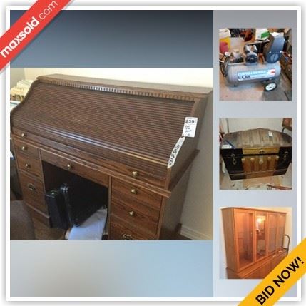 WHAT IS IN THIS AUCTION? This online auction features Volvo, Ford, Jeep tires and wheels, Pfaltzgraff dinnerware, quilt rack, wingback chair, platters, punch bowls and other servingware, wall decor, games, volleyball game set, large metal armoire cabinet, metal filing cabinets, vintage sleds, aquarium supplies, gardening items, cross country skis, trunks, model plane, room dividers, plant stands, shelf units, bear items, 7 piece wicker set, roll top desk, christmas decor, model trains, modern hutch, oak dining table and chairs, vintage toys, fencing gear, diving gear, electronics, archery items, camping gear, Thule bike rack, fireplace tools, brass items and much more! HOW...