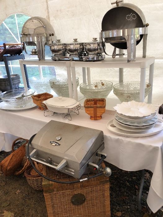 It's the holiday season and we have just the sale for you! Local well known caterer, and resident of Wilton for over 50 years is purging. There is so much inventory that we are breaking this sale up into 2 phases. Every day we are pulling out more stuff, so keep checking back to the listing to see more photos and descriptions. PHASE 1 to include: Huge collection of fine china, crystal and serving pieces. You can cover every holiday or life events, for a year, with this sale The client has included just a few items from her catering...