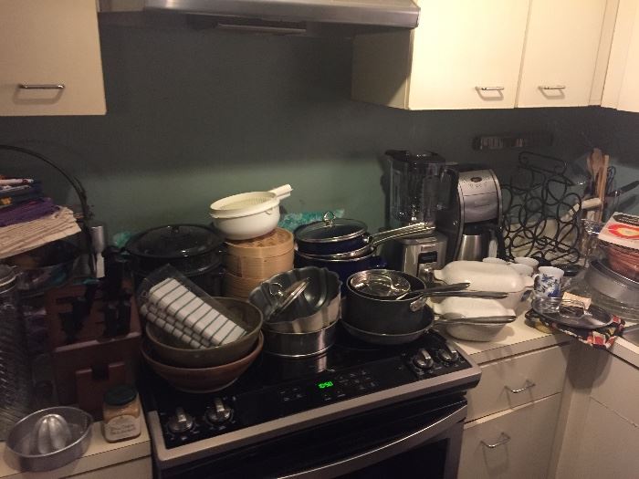 -Ladies Clothing Sz 14-16 (L-XL) Shearling Coat, Mink Wrap, Designer Items -Shoes - Sz 10 - Crystal, Sterling (service for 8) - Waterford, Nieman Marcus - Jewelry - Kitchen - All Clad, Chantel, NEW WOLF Blender, Convention Oven, Griddle - Antique Linens - Bedding - Down Comforters - Artwork, Listed Artists - Rugs - Mirrors - Books - electronics - lots of smalls.....misc.
