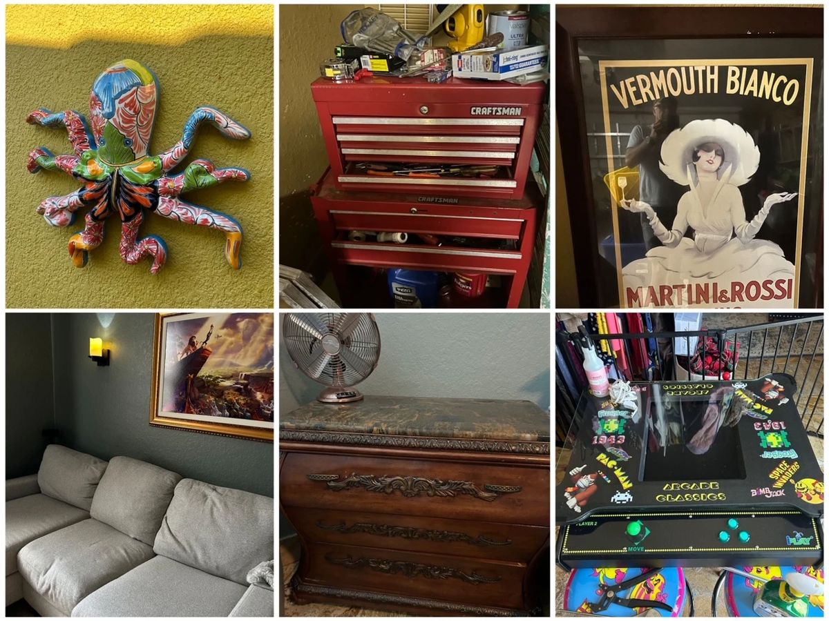 This is a fun Bradenton sale with lots of goodies......*Sofas *Art *Coffee Tables *Recliners *End Tables *Lamps *Decor *Bar Stools *Bistro Table and Chairs *Marble Top Chest *Vanity Table *Dressers *Chests *Candles *Pots and Pans *Dishes *Kitchen Goodies *Scarlett O'Hara Vinyl Portrait Doll *Fish Tank *Huepar Laser Level *Garage Goodies *Shop Vac *Tools *Ladder *Tennis Racquets *Vacuums *Kitchen Aid Mixer *Cups *Silverware *Baking Goods *Toaster *Kitchen Table *Decorative Furniture Pieces *Guitar *Alesis Drum Set *Books *Clothing *Purses *Outdoor Plants *Arcade Classics Table .........and MORE!!!