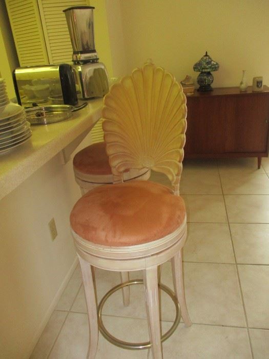 table and chairs, loveseat(double recliner), tea cart, leather recliner. Tiffany style lamps, mid century style credenza, set of china, pottery inc Weller and McCoy wall pockets, bookends, occ chairs, clocks, marble top table, 1920's bedroom set, victorian desk, Broyhill queen bed set, kitchenware,