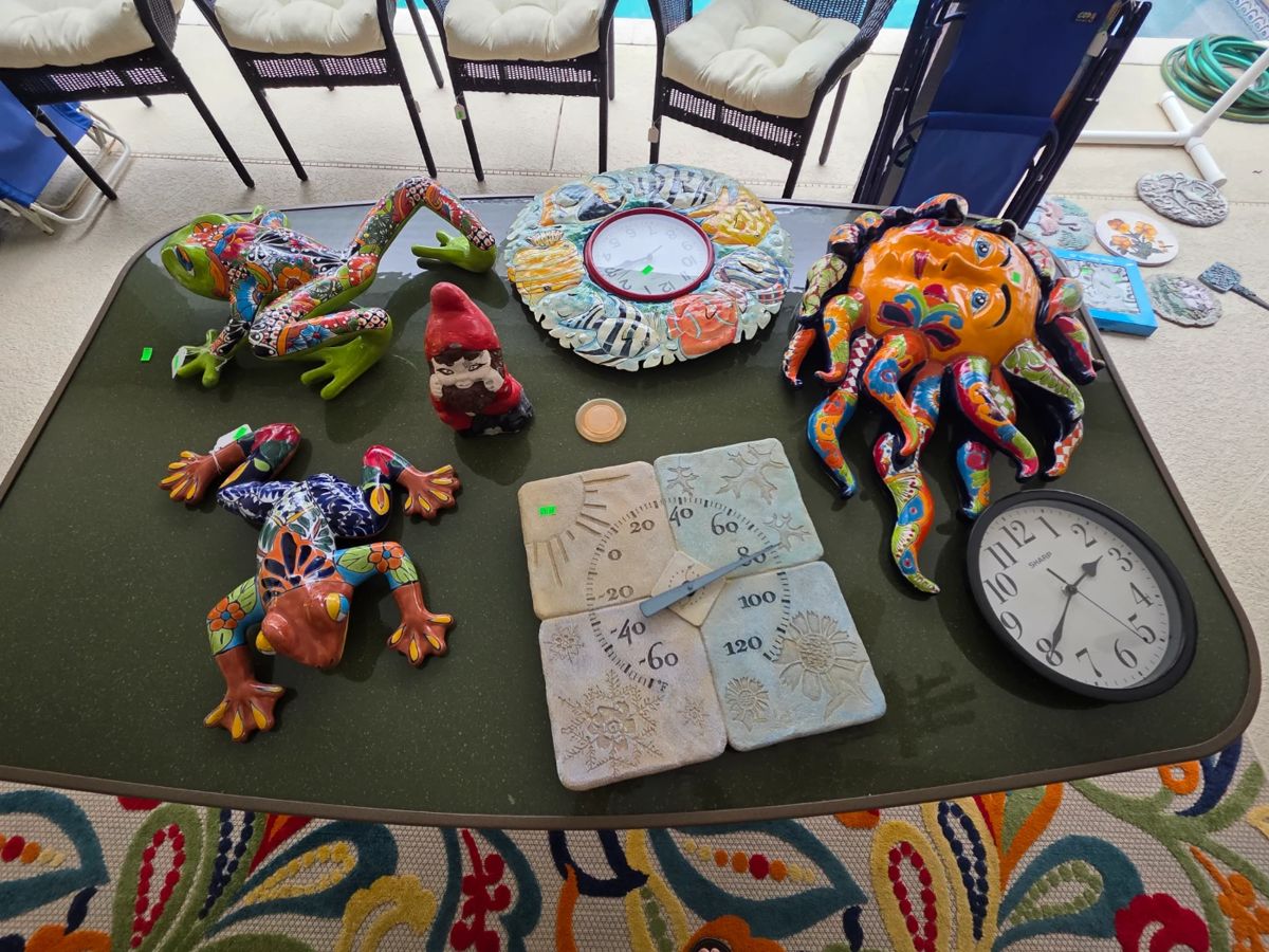 FRIDAY 0% OFF SATURDAY 50% OFF NEWER WELL CARED FOR ITEMS. RATTAN Large Live Plants In Pots Inc. Cacti Outdoor Cabinet (Heavy Duty Plastic) Talavera Decor Garden Stones Outdoor Patio Clocks Large Outdoor Patio Rug Rattan Round Patio Table w. 2 Matching Chairs Oval Patio Table 4 Matching Wicker Patio Chairs w. Cushions Wicker Outdoor End Table Pool Toys Aiper Seagull Pro Cordless Robotic Pool Cleaner Christmas Items 2 Bikes Bike Helmet Thule Hitch Bike Rack Costume Jewelry Inc. Watches 3 Large Packs of Toilet Paper Craftsman Generator & Generator Multi Extension Cord Craftsman Pressure Washer Craftsman Air Compressor Toro...