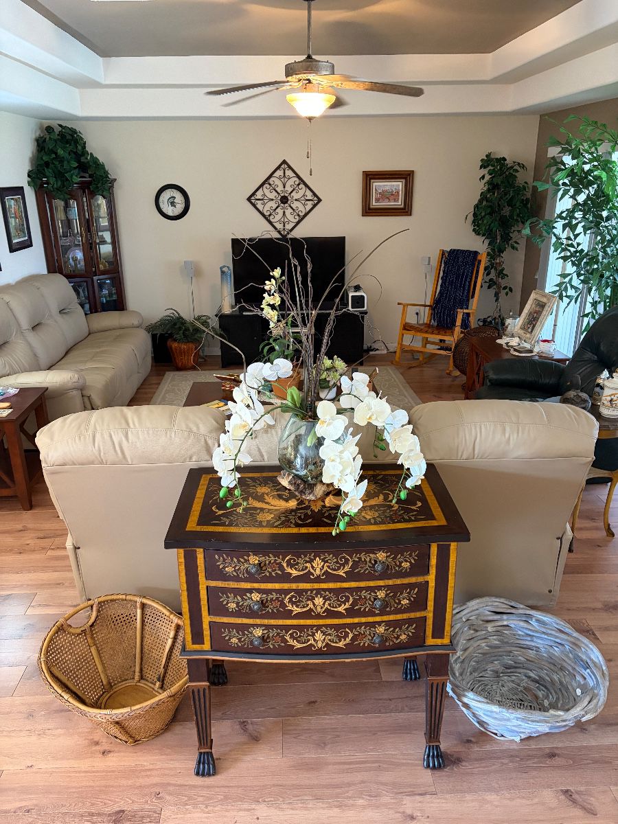 Come check out our next estate sale located in Cape Coral beginning Friday 4/24. Here’s a little of what you might find at this sale ⬇️ (More pics will be added as we prepare) *2 identical leather reclining sofas *Corner display cabinet *Rocking chairs *Coffee table *Side tables *French provincial dresser, nightstands, desk, vanity *Barstools *Baker’s Rack *Sofa tables *Desks (2) *Kitchenware (kitchen aid mixer, Ninja blender, etc) *Linen *Household items *Fake trees/plants *Vibration plate *Tools SOOO MUCH MORE!