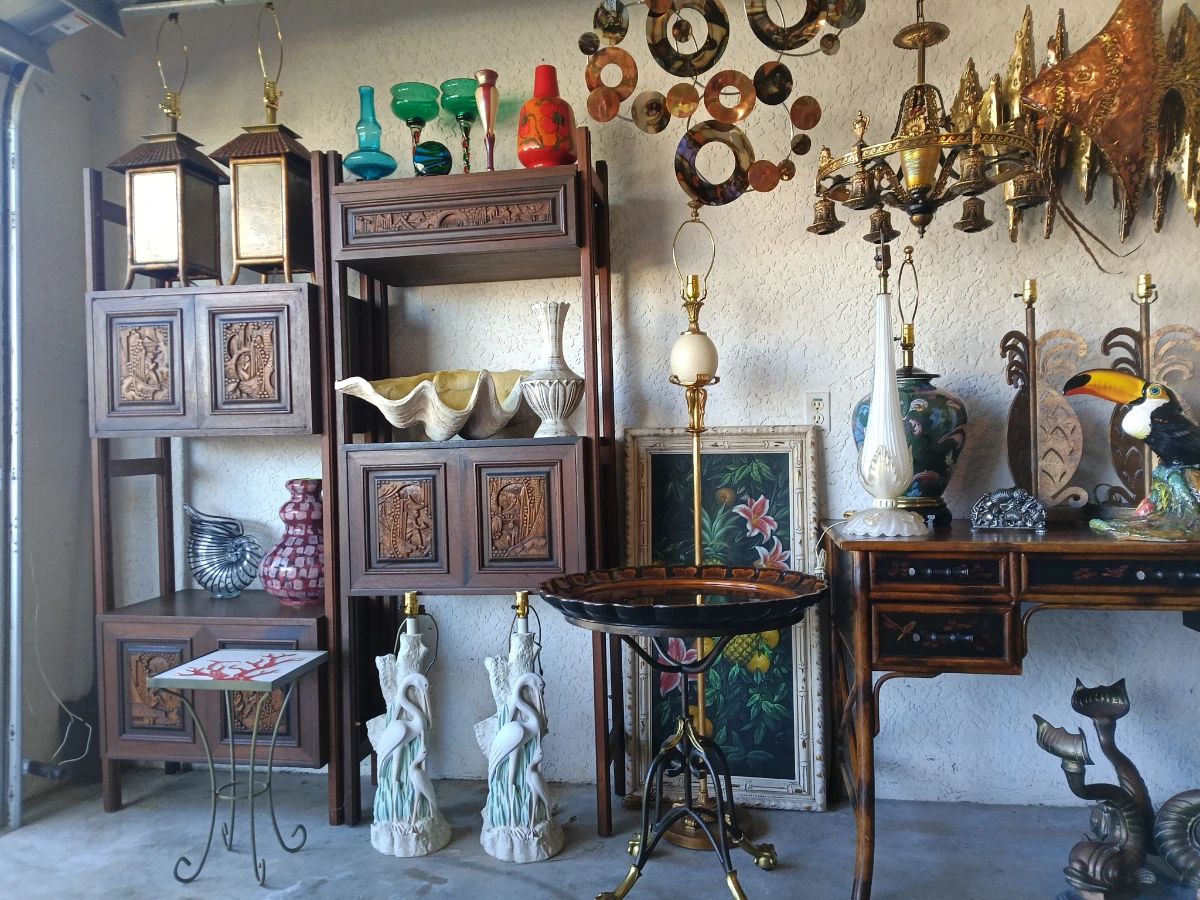 Great pricing on desirable furniture and decorative arts as well as household items. Lots of art glass including Blenko and Murano, Italian ceramics, Durand art glass chandelier, Theodore Alexander bamboo desk, brutalist sculpture, Kipp Stewart mid century modern credenza, Frederick Cooper lamps, and so much more!