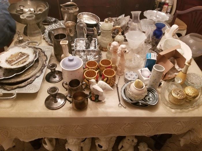 Another devine sale brought to you by Blair Burns Estate Sales. Lots of wonderful antique and vintage items to choose from: McCoy pottery, Brush pottery, Blenko glass decorative accessories, Antique and vintage cameras, Formal dining room dishes, Casual dishes -- new in box, Stemware, Jadeite glass ware, Hobnail Fenton glass, Cranberry Fenton glass, Mid-century light fixtures, Antique light fixtures & dining room chandelier, Mid-century glassware, Capodimonte lamps, Capodimonte vases,, Vintage Anchor Hocking bar ware, Vintage record albums, Costume jewelry, Towels, Bedding---sheets, comforters, Cake pans, Pie plates -- Pyrex & Aluminum, Pyrex bowls, Food preparation -- pans, roasters, Waring blender -...