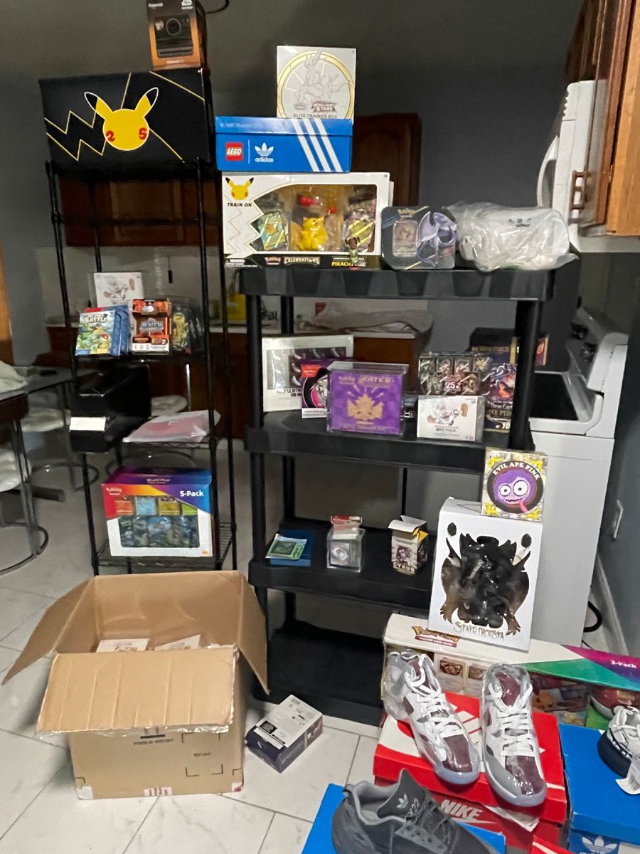 have a lot more that is not showing in the pictures if you’re interested please call me. My number is 702-969-2416. Ask for Delilah I have a lot of sets of Pokémon cards from sword and shield era and Sun and Moon a lot of Japan toys sealed a lot of instruments and a little bit of furniture will go on all day after 5 o’clock. Give me a call thank you have a wonderful day.