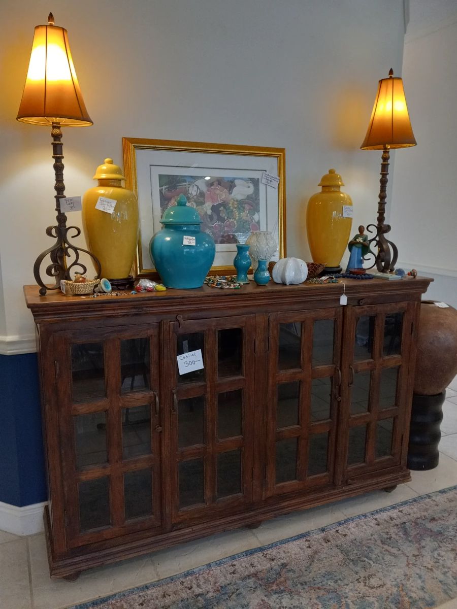 This is a beautiful home and a garage we had to make into another room to hold all the fabulous items available to buy. Many one-of-a-kind items, artist signed items, usual and high quality pieces. Plus a lot of useful contemporary items at a fraction of new prices. Highlights of furniture include: Mount Airy double pedestal dining table with 2 leaves 6 Parsons Chairs from Pier 1 4 Rush seat bar stools Wonderful leather Sofa and leather ottoman Southwest sideboard style display cabinet 3 lighted curio cabinets 2 desks and desk chair 2 drawer file cabinet Drop leaf sofa table...
