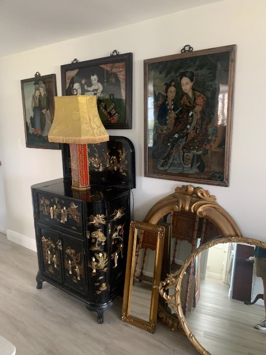 ESTATE SALE! Beautiful Fort Lauderdale beach side condo full of fine antiques, antique furniture, clocks, Illadro figurines, Oriental antiques, 19th century paintings etc. THIS SALE IS BY APPOINTMENT ONLY. PLEASE TEXT OR CALL 954-214-3981 TO SCHEDULE AN APPOINTMENT SALE WILL CONSIST OF: 19th Century Chinese reverse glass paintings 1940s chinoiserie black lacquer bar cabinet 19th century mirrors 19th century rosewood oriental nesting tables 19th century Chinese tambour marble top table 19th century Chinese carved wood marble top tables 19th century chinoiserie faux bamboo marble top nightstands vintage hats pair of green Hollywood Regency chairs Pair of neo classical chairs Sterling...
