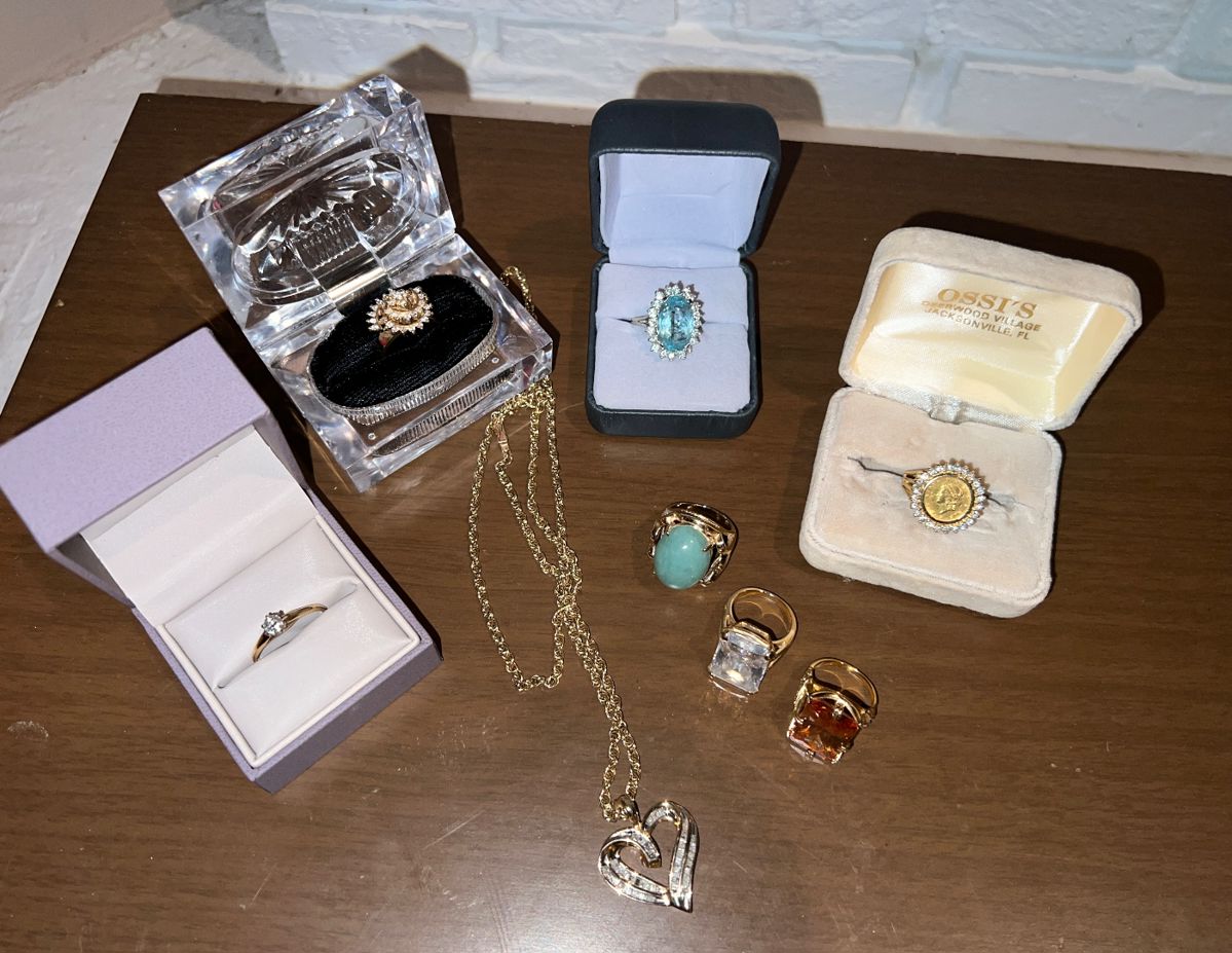 No pre-sales. If we have a price available we will put the information in the details section of the photo. Beautiful Waterfront home located in the heart of Green Cove Springs. 4 generations have lived and loved in this fantastic MCM home that is full of goodies! Many handmade local artist pieces throughout the home- as well as antiques, vintage and modern one of a kind designer items. Rare! Gaetano Sciolari for Lightolier MCM Hanging Light Towle Sterling Flatware Fine Jewelry, Luxury Brand Costume Jewelry Coach, Brighton, Whiting & Davis, Kate Laundry hang bags Vintage 7pc Rattan Dining Room Set...