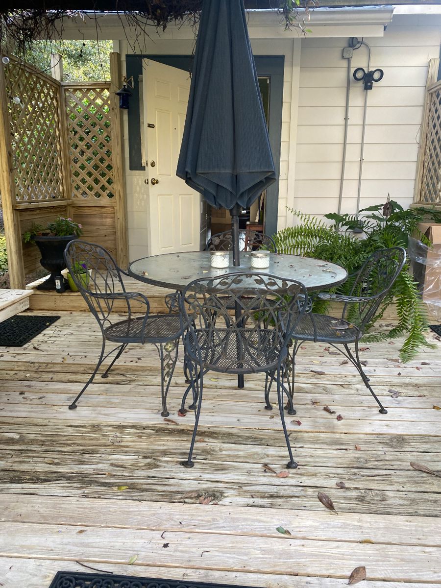UPDATED FOR SATURDAY MORNING. HALF PRICE SATURDAY. There are about 4 items that are 25% off. This is a lovely historic home that just got a new buyer so we need to empty. 3 microwaves, Duncan Phyfe dining table with 6 chairs (100), several pieces of furniture to repurpose (10 each), lots of art work, elegant four poster pineapple bed (800), queen mattress and box spring (125) tall armoire with storage (275), wrought iron patio furniture (100), some tools, two couches (65 large one 35 smaller one), 3 bar stools (65), tool box (10), clothing, women's shoes around size 7,...