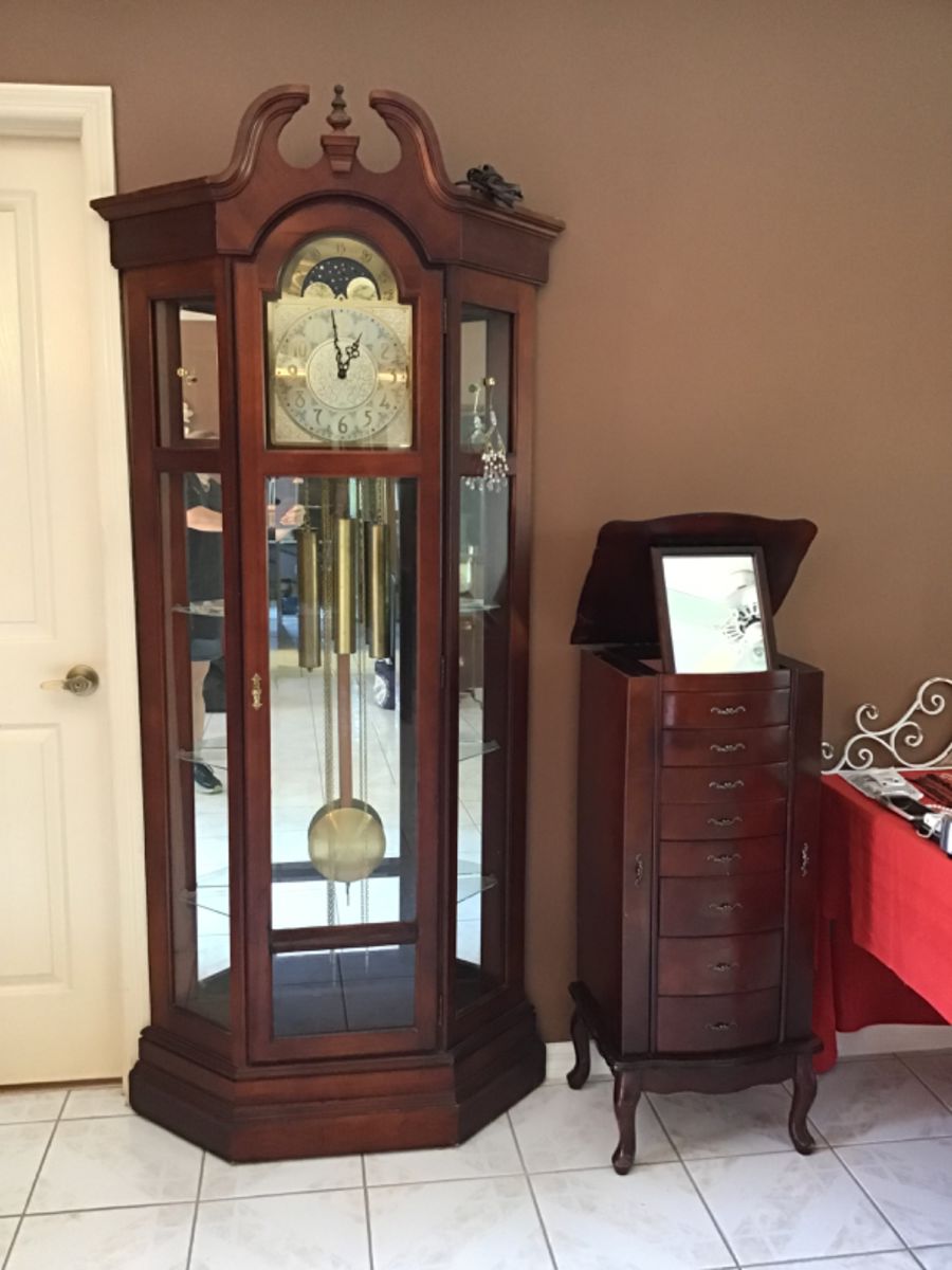- Grandfather clock with display shelves
