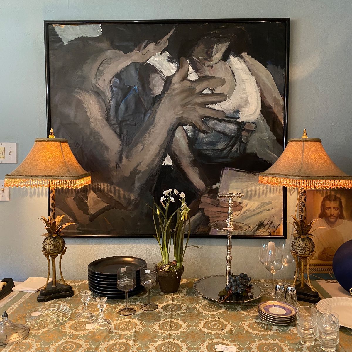 Welcome to our eclectic home & garden sale chock full of fun and fabulous finds. Awesome mix of antiques, vintage (MCM) primitive mid-century decor and furniture, work by local artists, LOTS of mirrors, figurines, ceramics, vintage collectibles. Lots of vintage chairs in a wide variety of sizes and styles. Small kitchen appliances, kitchenware and dishes, pots and pans … and more. A room full of and vintage men’s and women’s clothing in various sizes, handbags, shoes, and accessories. Linens, blankets, towels, and beautiful vintage quilts. Laundry supplies, exercise equipment. Office supplies and furniture, including MCM desk, brand new 4-drawer filing...