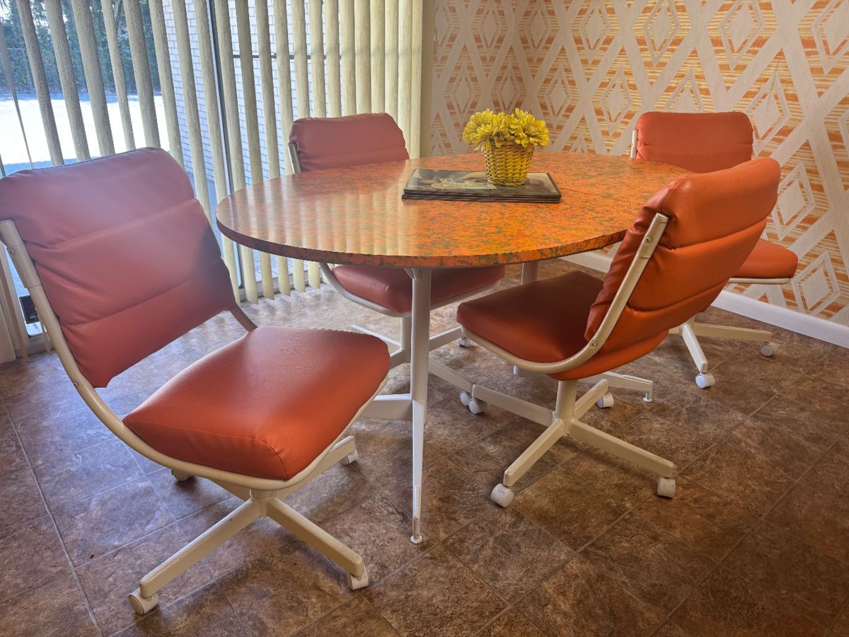 Come join us in this 1960s home for another Timeless Treasures sale… mint condition MCM 1960s kitchen table and chairs, dining table, and matching China cabinet, collectibles, kitchen items, clothing, home, decor, bedroom furniture, costume jewelry and more…