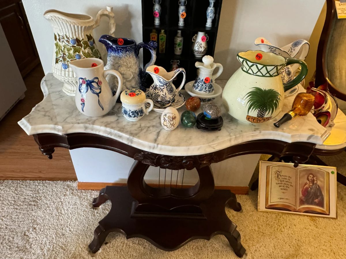 We've put out everything! This home is jam-packed full of all kinds of interesting things! Furniture, Outdoor decor, stone, etc., holiday decor, collectibles, clothing, costume jewelry and much, much more! Too many items to list! Just come and check it out!