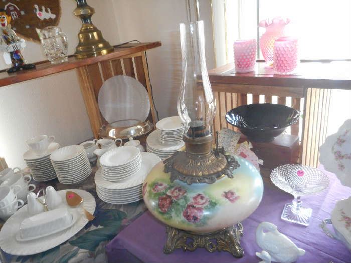 Estate sale for this 3BR home just off 27South on the Sebring-Lake Placid line. Lots of everyday mid-century furniture. Following is a partial list. Pretty winter white wood trim sofa with matched, white chairs, cobbler's bench table, sturdy oak den furniture w/ plaid cushions, sidle up to the all-wood bar, bar stools, pine end tables with hinge tops and storage inside. Gun cabinet, sewing machines, large, pine china cupboard, a corner cabinet, DR table w/leaves, pedestal kitchen table, Chairs w cane seats.Two bookcase hutches w/large, matching knee hole desk, writing desk w drawers, Fostoria oil Lamp, Sheffield bone white china,...