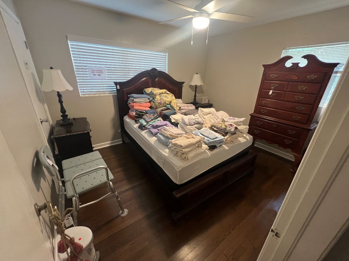 Christmas decor, furniture, some kitchen items. Lots of books ( Romance) and more.