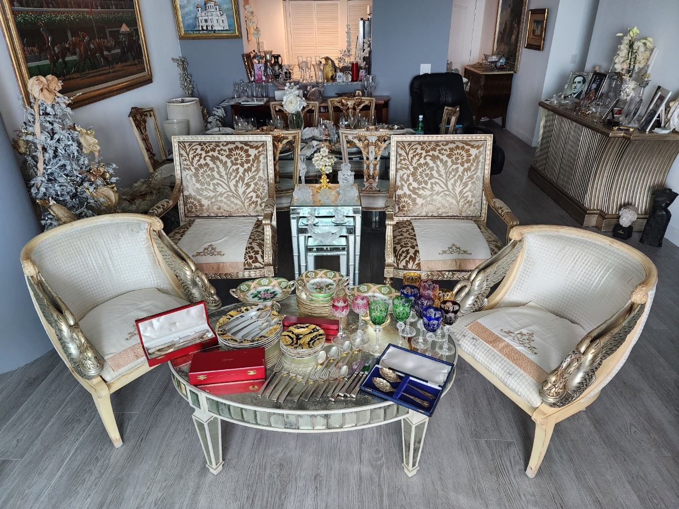 One of the nation’s most celebrated business women, a legendary real estate trailblazer, fashion icon, philanthropist, and art collector, is adjusting her collection of fine art, luxurious furniture, stunning art glass, jewelry, and haute-couture allowing her to focus on new ventures after her move from the Mid-West to Miami. Her collection includes: Antique & Vintage Platinum and Gold Jewelry (including ROLEX, DIOR, European Designers, etc.);, Cartier & Tiffany Sterling Silver Flatware;, Large Designer Couture collection of several hundred dresses and robes (barely) worn at some of the country's most prestigious galas and events - this is fashion with history attached;,...