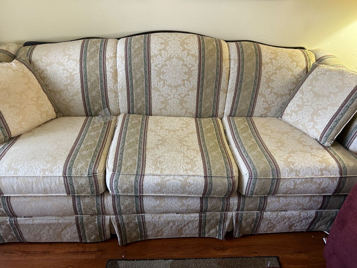 Happy New Year. We will be in the wilds off main st in New Port Richey. There is a lot in a small space. We have a very nice sofa and love seat. There is a like new 65”tv and 2 end tables. We use a really nice walker, 3 silk plants, and 2 bakers rack. There is a bar height table w/ 2 chairs, and a regular table w/3chairs. I have a really nice recliner, kitchen items and a lasso fan. Then there is a queen mattress, dresser w/mirror, a chest of drawers, and 2 night stands. we have...