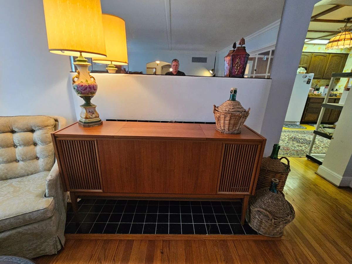 Lots of Mid-Century furniture & collectibles! MCM Telefunken stero console 1918 Ford music box decanter Peacock wicker chair 1950's hand-carved Calla Lily KOA furniture: Sofa bed, 2 end tables, coffee table, 2 chairs, all priced individually 55" LG smart TV PAX 35mm Gold camera Piano Yankees clipper 13L vintage slide Large selection of vintage clothing, hats, coats Large collection of vintage cameras Vintage movie screen Vintage Christmas Vintage roller rink skates Mid-Century furniture Antique music console Single beds Antique Dressers Military uniforms, hats & pins Vintage bathroom items, hair curlers Piano Acoustic & electric guitars Vintage Lamps Office desk Vintage...